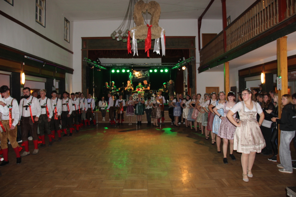 Zusammen mit der Kirmesgesellschaft und er Kinderkirmesgesellschaft ging es direkt vom Baam („Gaststätte Grüner Baum“) ins Klubhaus rein, wo schon viele Leute warteten, den Einmarsch von beiden Gesellschaften zu sehen. Vor allem die Kinder haben begeistert, wie toll sie das schon alles beherrschen, für Nachwuchs ist also gesorgt in Themar.